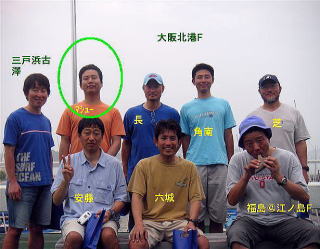 (六城注:長谷川・角南・六城の団子で走っておりました。フィニッシュラインで風が変わり角南がジャイブしている間に長谷川・六城でフィニッシュ。レース後角南から『えげつない』と言われるが、まだまだ角南には負けるわけにはいかんのだよ^o^ マシューには次のフィニッシュでも負けてます)