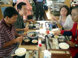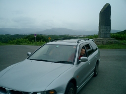 | 祝津到着! ジェットは札幌に置き去りにして、安藤さん のドライブで軽部・寅子・角南・六城です。 軽部も昼飯までは車から一歩も出られず・・・ (天候は雨で17℃で風も強く肌寒いです) |