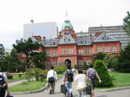 初日はジェットツアー 札幌に着いたらまずは北海道庁へ 雪駄履きのままのジェット添乗員 |