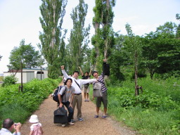 博物館やらオルゴール博物館やら、 アイスクリームやらを楽しみました。 庄坊番屋で早めの晩御飯を食べて運河を散策して帰りました。 本日の立役者安藤さんを囲んで記念写真 |