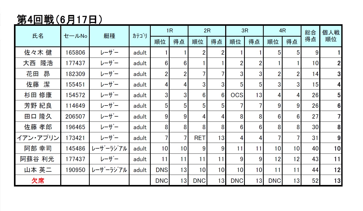 カラっとした天気の6/17(土)、第4回ISTが開催されました。この日は朝から北風!稲毛の北風といえば振れる!が定石ですが、案の定、振れ振れのレースとなりました。