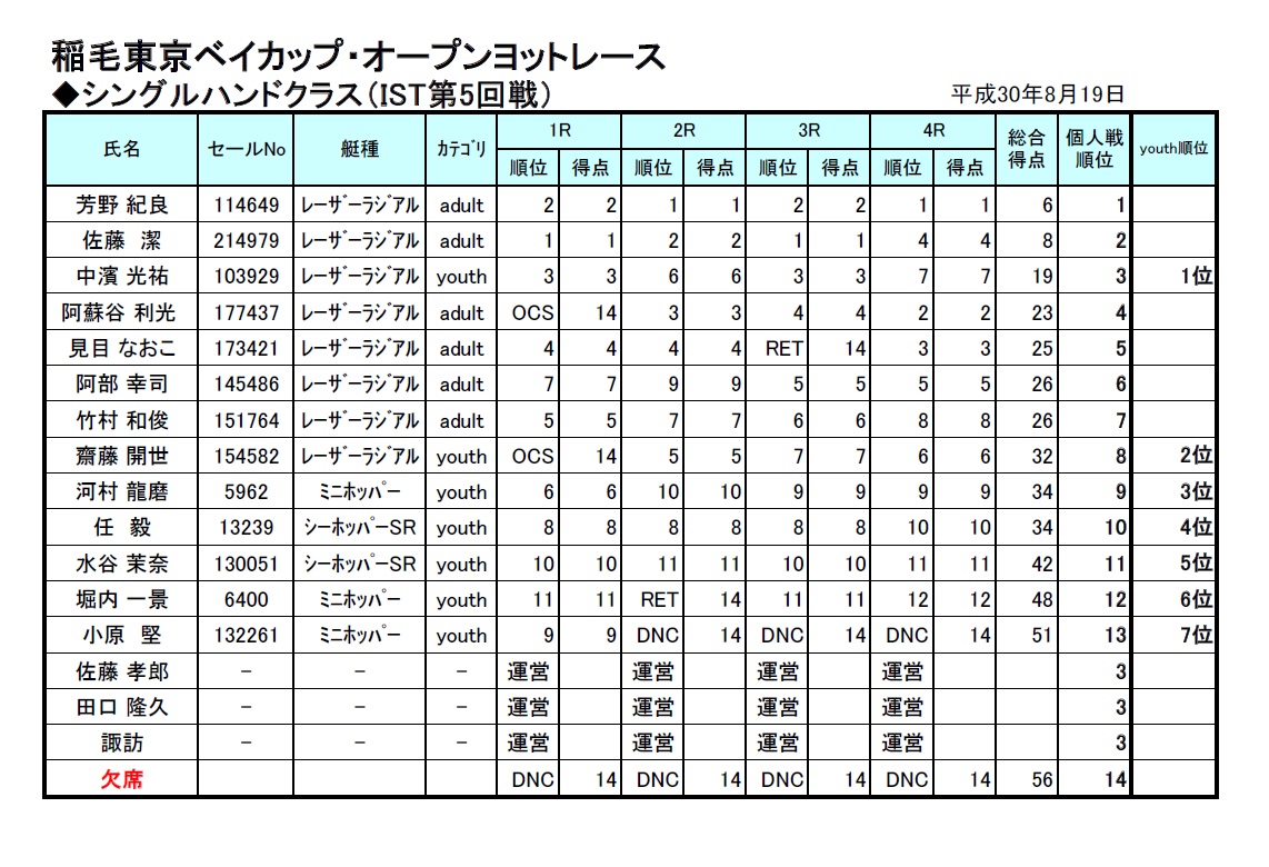 成績表:シングルハンド ⇒ ![]()
