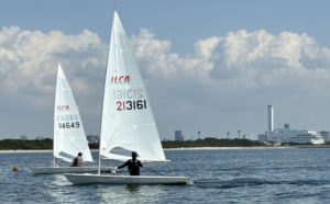第3R、ここまで芳野選手に抑えられていた都選手が、途中までTopを走ります。翌週の東京湾に向けて“良いイメージ”を掴みたい都選手が一矢を報いるか?と思われましたが、下回航を先行した都選手の後、2位回航の芳野選手が下-Finishの間を鼻差で逆転。勝因は、本部船寄りではなく、Finishマーク側に落として走ったためでした。元々所用があった都選手は、“良いイメージ”を摘めないままハーバーバックとなりました。