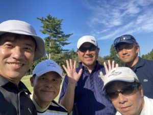 さて、前半戦が終了しました。その時点でハンディキャップ(HD)を加味すると全員に優勝のチャンスがある結果(※前半終了時スコア)となりました。(※)佐藤46(HD12)、大和46(HD11)、平尾50(HD18)、佐々木50(18)、阿蘇谷64(HD36)